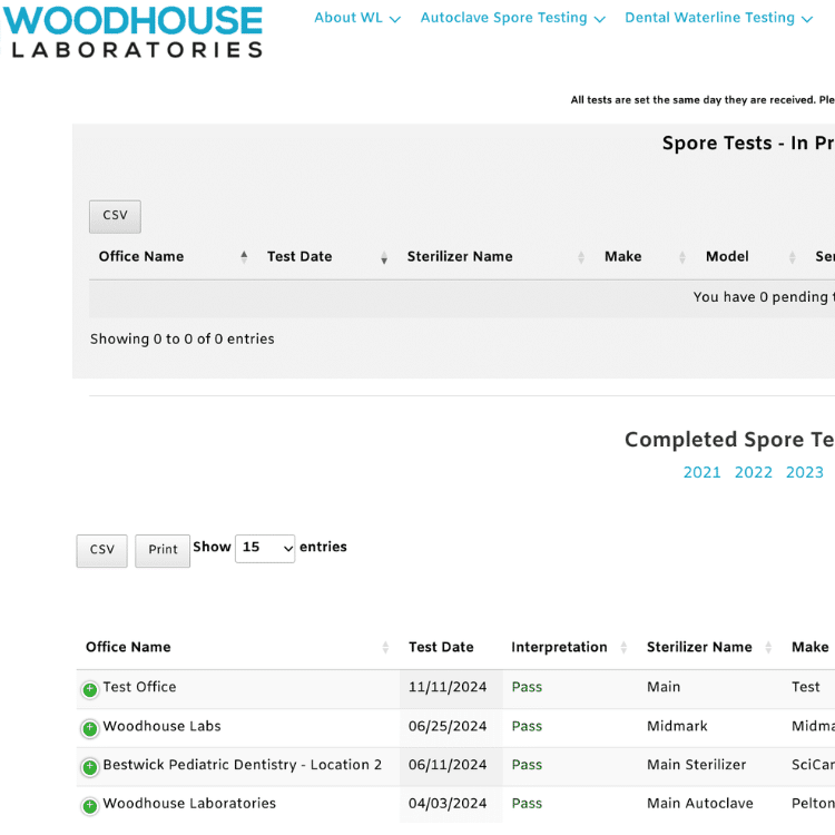 Our dashboard offers advanced sorting – allowing you to view results by Office, Test Date, or Result.